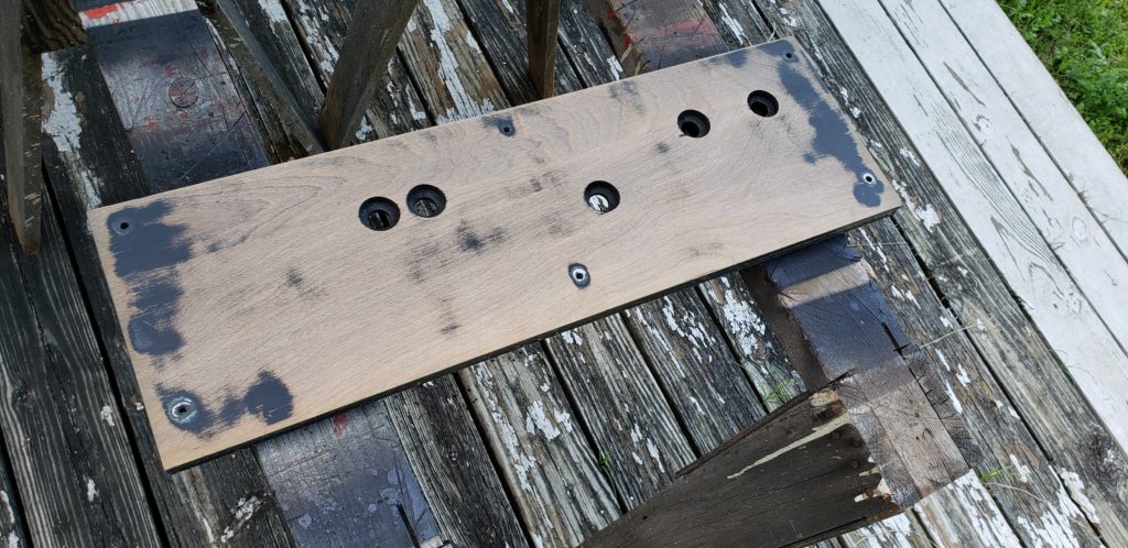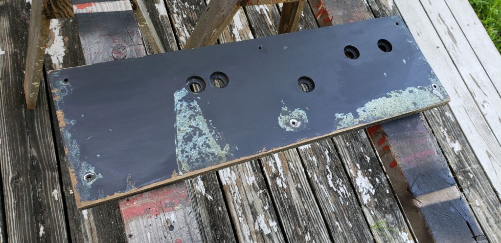 In order to get maximum adhesion for the new overlay, I sanded down the old paint and re-coated it with new black paint.