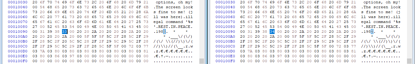 Aside from the missing word, the tombstone date, and the different copyright message, the only other difference between my copy and the "original" v1.1, SN:1349 is this chunk of code below. I don't know what it does or how it affects the game, if at all. I'd love to find out though.